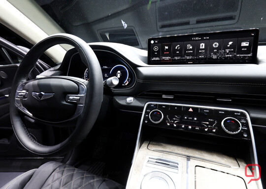 GV80에는 기존의 화면 터치 방식 외에도 필기 방식으로 인포테인먼트 시스템을 조작할 수 있는 제네시스 통합 컨트롤러(필기인식 조작계)를 도입했으며, 오목한 형태로 구현해 잘못 입력하는 것을 방지하고 자동완성 기능과 자세에 따른 각도 조절 기능 등을 더해 GV80 시스템의 편의성과 정확도를 높였습니다.