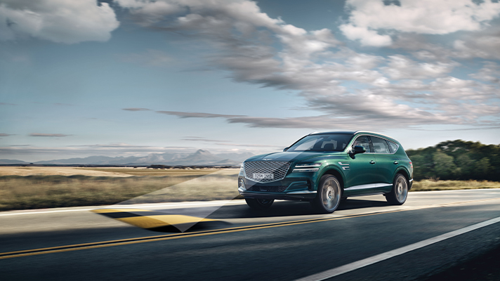 또한 GV80는 구현 가능한 최고 수준의 능동형 안전기술과 차세대 고속도로 주행보조 기술을 대거 탑재해 더욱 진보된 자율주행 구현이 가능합니다.  GV80는 강화된 전방 충돌방지 보조 기술이 적용돼 교차로 좌/우측에서 다가오는 차량과
