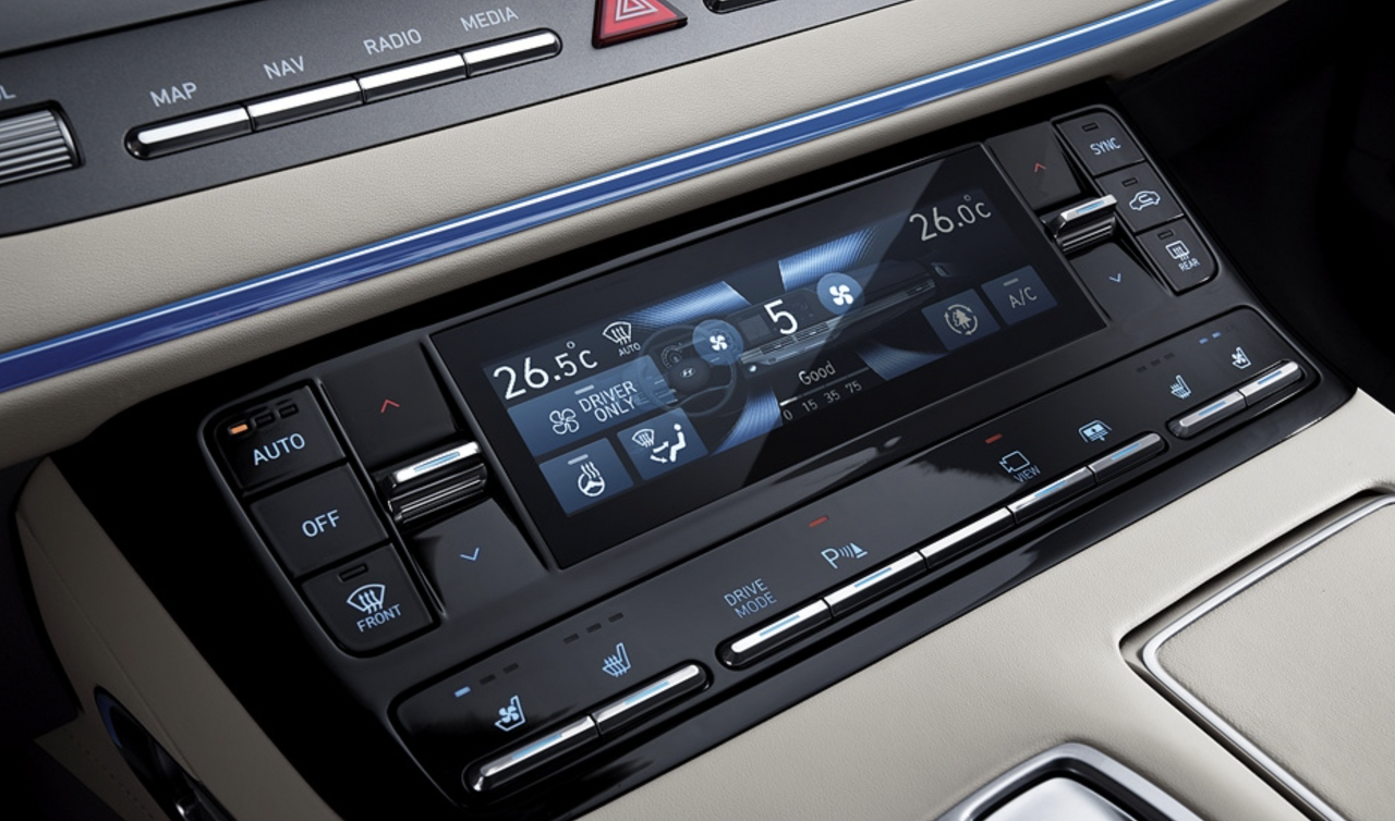 운전자의 편의성을 높여주는 터치식 공조 컨트롤러는 터치 디스플레이를 통해 온도 및 기능 동작 상황을 살펴볼 수 있고 공기 청정 및 온도 조절을 물리 버튼을 제공하여 사용성을 좀 더 높여줬습니다. 현대사회의 필수 품으로 스마트폰을 어디서나 사용하다 보니 자주 충전하게 됩니다. 그랜저는 주행 중에 센터 콘솔 상단 트레이에 마련된 스마트폰 무선 충전을 통해 편의성을 높였습니다.