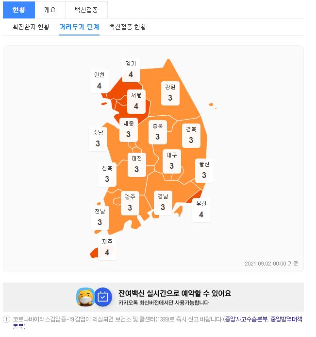 몇차례 연장되어 온 사회적 거리두기 4단계인데요. 7월 중순 4단계가 시행되면서 이렇게나 오래동안 연장되어 올 줄은 몰랐는데 델타 변이의 확산세로 인해 어느덧 추석 문턱까지도 사회적 거리두기 4단계와 함께 생활하고 있습니다. 현 연장행되었던 사회적 거리두기는 약 2주간의 기간으로 8월 23일부터 9월 5일까지였고 수도권은 4단계, 비수도권은 부분적으로 1-3단계를 유지하고 있었습니다.