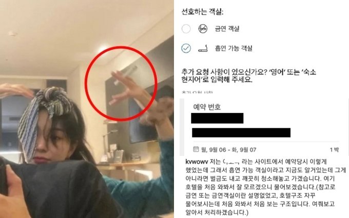 실제로 해당 호텔 예약 사이트에 들어가보면 권민아가 머문 호텔 예약 및 결제 페이지에서는 특별 요청란에서 금연 객실과 흡연 가능 객실을 선택할 수 있다고 합니다. 권민아가 게재한 화면은 조작이 아닌 모바일 화면으로 보인다고 하는데요. PC 화면에서는 '숙소 상황에 따라 제공되지 않을 수 있습니다'는 문구가 있지만 모바일 화면에선 해당 문구가 보이지 않았다고 합니다.