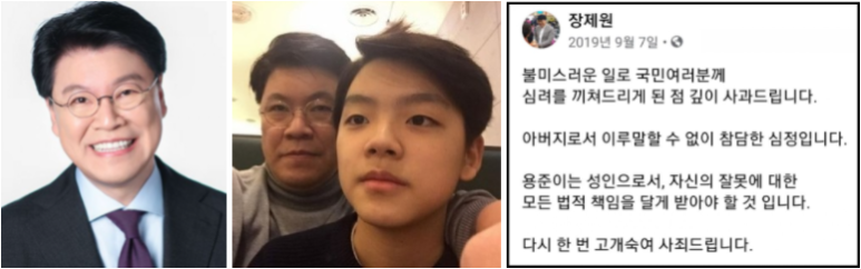 이번 사건으로 장제원 아들 장용준의 과거 행적에 관심이 쏠리는데요, 2019년 9월 장용준은 서울 마포구에서 만취 상태로 운전하다가 오토바이와 충돌했습니다. 당시 정용준은 운전자를 바꿔치기하려는 정황까지 포착됐습니다. 해당 혐의로 기소된 그는 결국 징역 1년6개월에 집행유예 2년을 선고 받았습니다.
