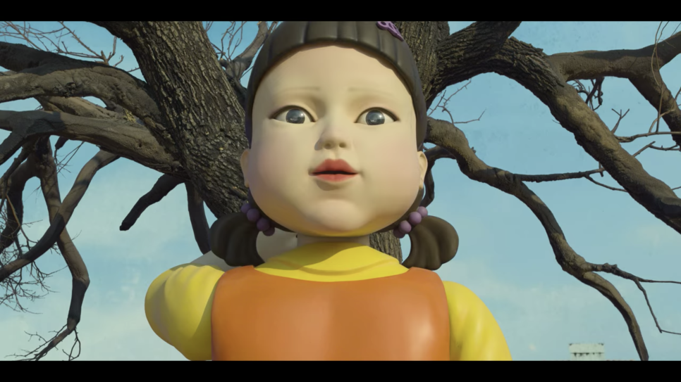 지극히 일본 스러운 느낌의 거대한 인형이 고개를 180도로 돌려가며 무궁화 꽃이 피었습니다 게임을 진행하는데 이 인형이 뒤를 돌아봤을 때 움직이는 사람들은 바로 총살당하게 됩니다. 첫 라운드에서 탈락자는 255명, 생존자는 201명으로 추려진다. 심히 공포스러운 첫 게임이라 대부분의 오징어 게임 참가자들이 게임 자체에 반기를 들었고 결국 주최측은 다수결이 원하지 않으면 지금 당장 게임을 중단하겠다 이야기합니다.