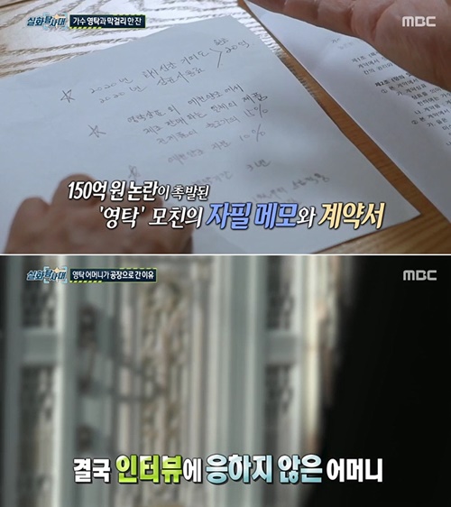 급기야 가수 영탁 측과 150억 원 논란에 휩싸이게 되었고, 막걸리 기업의 백구영 회장은 ‘실화탐사대’ 제작진을 찾아왔다고 합니다. 그가 건넨 서류는 그간 공개된 적 없었던 150억 원 논란을 불러온 모친의 자필 메모와 계약서 원본이었습니다. 거기에는 ‘영탁 막걸리’뿐 아니라 막걸리 기업 전 제품의 로열티를 매년 50억씩 3년간 달라는 내용이었습니다. 연간 수익이 10억에 불과한 막걸리 기업에서 받아들이기 힘든 액수였습니다.
