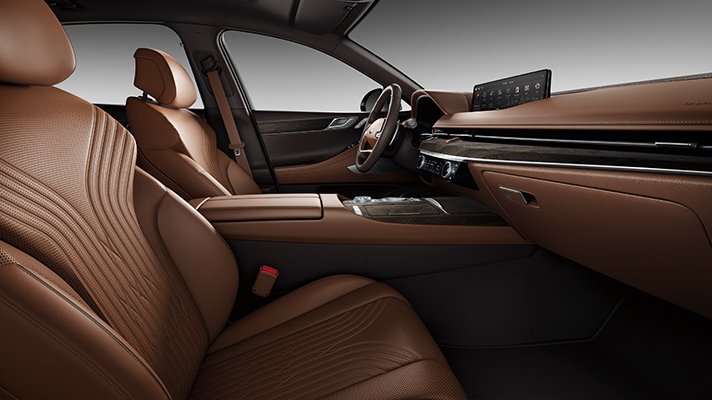 우선 2022 제네시스 G80은 대형 럭셔리 세단에 걸맞은 고급 편의 사양들이 새롭게 적용됐습니다. 대표적인 변화는 동승석에도 적용된 에르고 모션(Ergo Motion) 시트입니다. 에르고 모션 시트는 7개의 공기주머니를 시트 내부에 적용해 주행 모드별 최적의 운전 자세를 잡아주고, 체형에 꼭 맞춘 시트 설정으로 편안한 착좌감을 제공합니다.